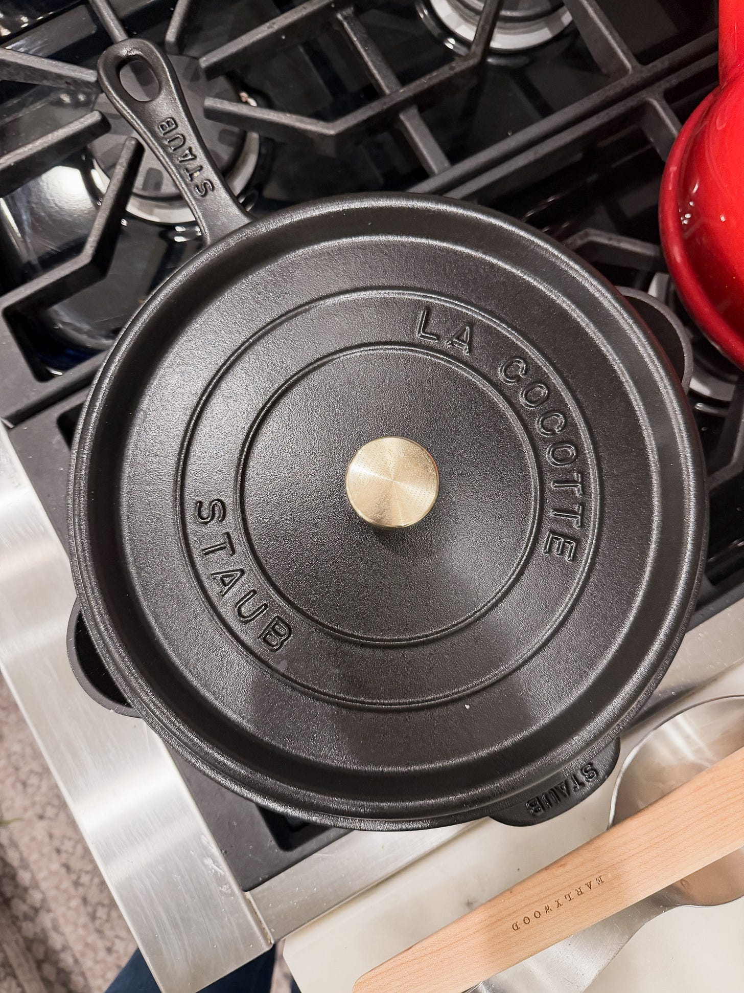I mentioned a few weeks ago that Staub sent me this cast-iron pan, which I have been using for just about everything. It actually makes the best eggs. I have also been using the lid from our Staub Dutch oven, which fits perfectly for meats.