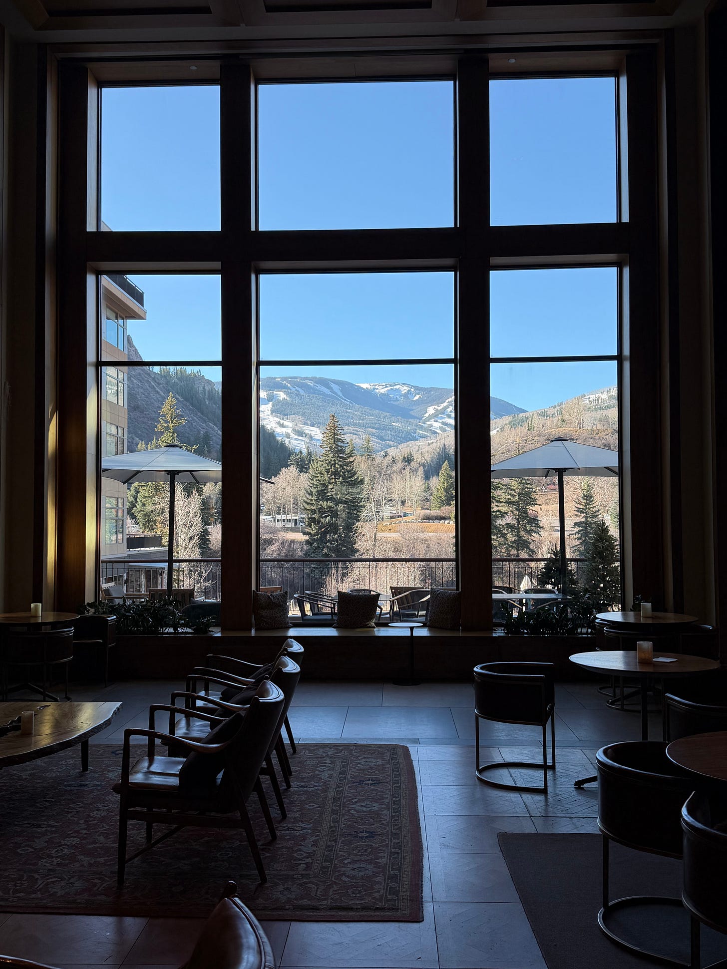 My husband is skiing in Colorado, and I am spending time with friends and working with a view of the mountains.