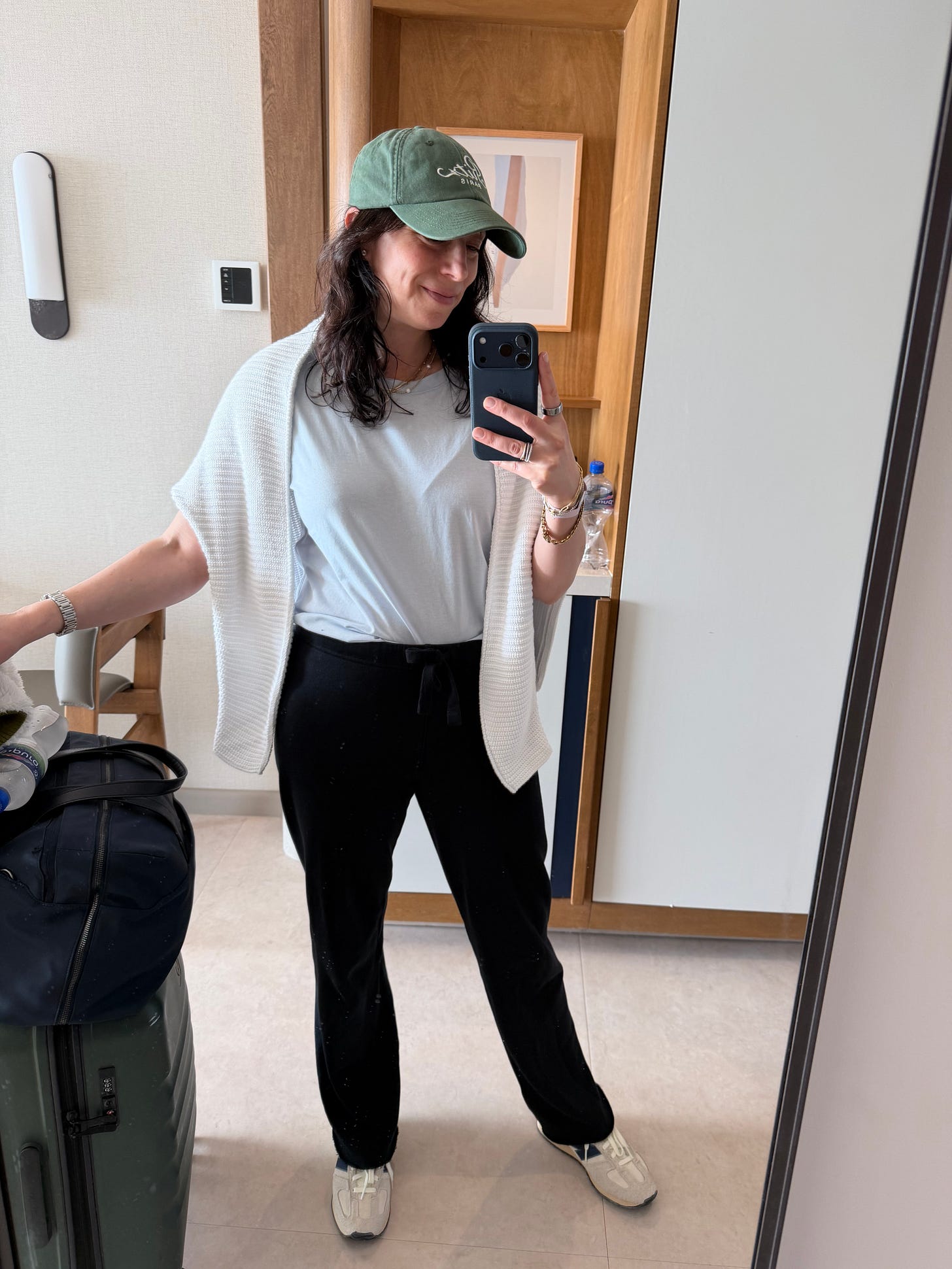 When I travel, there is always something I call out for, to be a hero. Something I wore on repeat or remembered to pack that just made the trip so much better. This white sweater was a last-minute addition to my wardrobe. I was able to throw it over my shoulders and wear it with sweats and jeans. On the last night, I put it on over this dress and made it look like a skirt-and-dress combo. The sweater runs a bit oversized, and a small is perfect on me.
